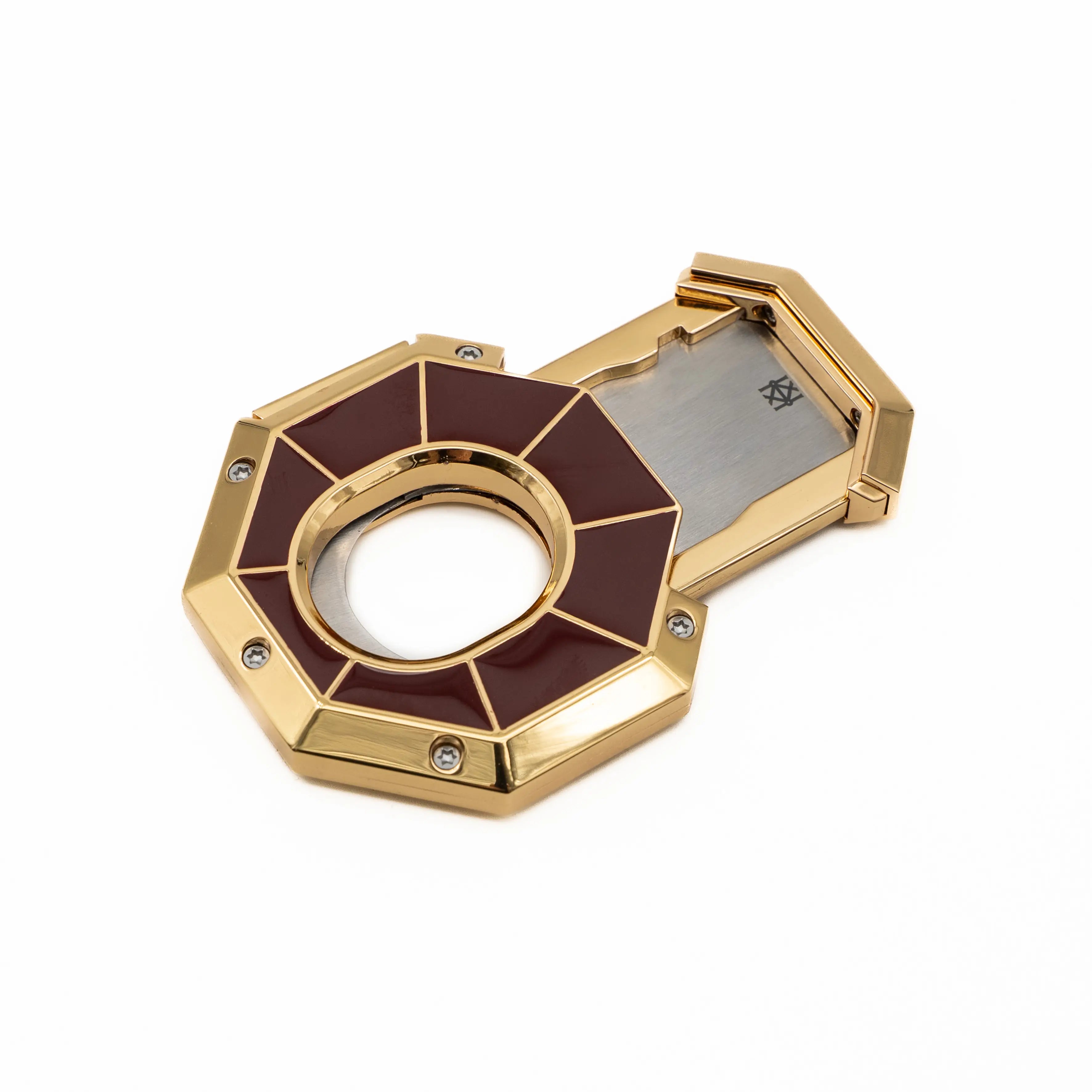 The HALO Cigar Cutter is an elegant, striking jewel sculpted in a gleaming octagonal case with exquisite enamel accents. A discrete spring-activated button releases the double-bladed guillotine, delivering a cut of effortless precision and poise.